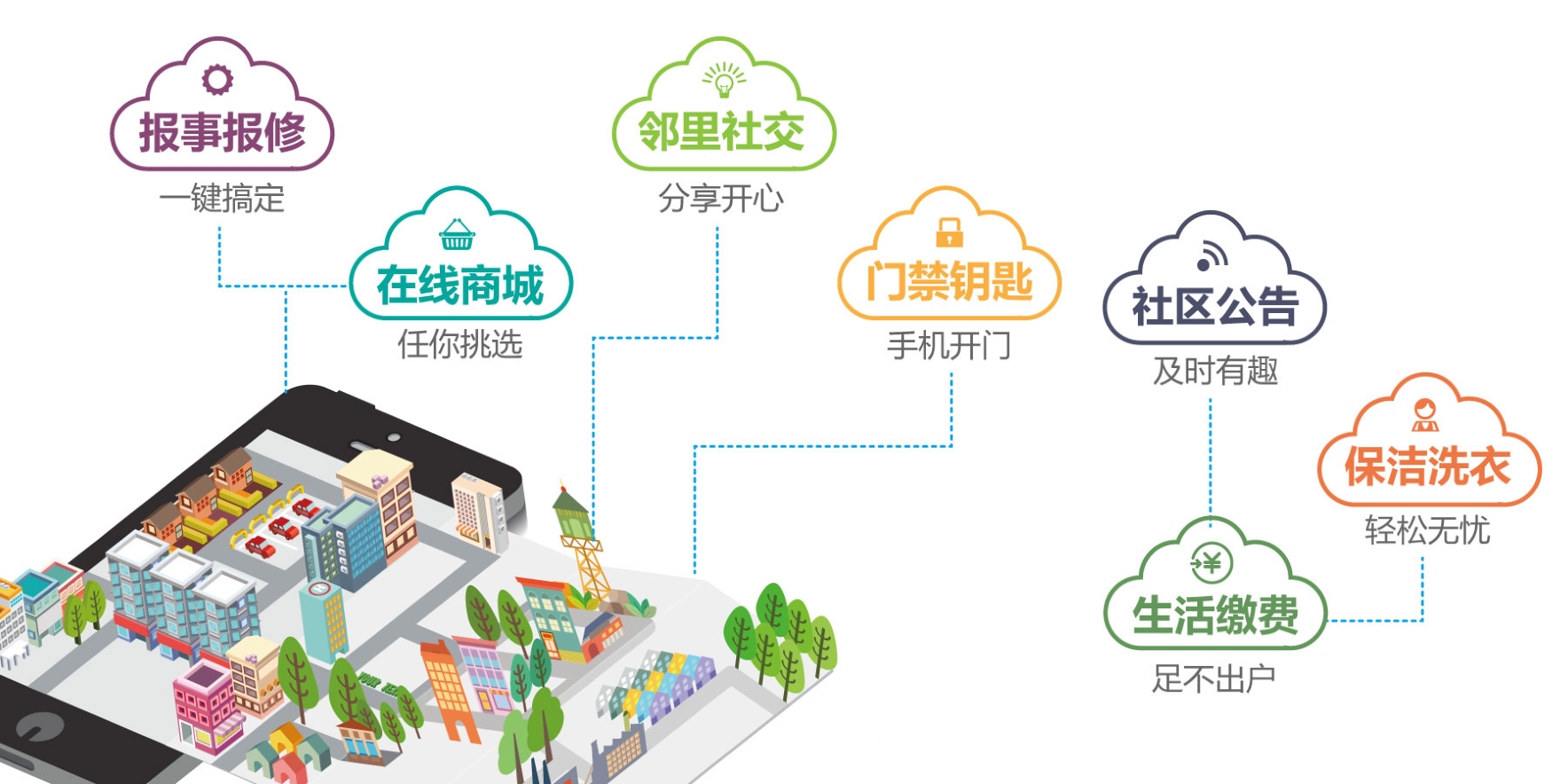 顺利获得“平台+硬件+运营”的软硬件相结合理念,涵盖到社区生活的方方面面,大到社区门禁、社区监控、社区通讯等,小到家居设备、安全警报、居家医疗设备等,均可顺利获得硬件设备将大数据收集传输备份至云端数据库,顺利获得平台整合分析可在线监控社区安全、接受社区需求、给予社区服务等,有效提高工作效率和业主满意度。