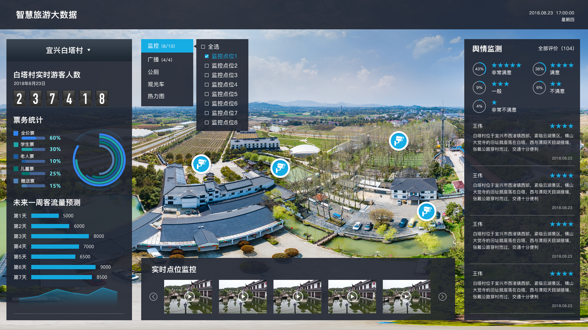 旅游管理服务体系,加强各服务部门之间的联动,及时分析景区人流、舆论等各种动态,做到时时在监管、处处都管到,各类问题防范在先,为游客给予优质旅游体验。